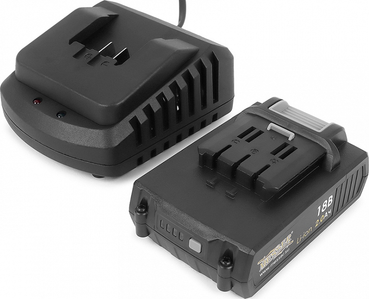 - Съемный аккумулятор напряжением 18 В и емкостью 2,0 Ач и зарядное устройство