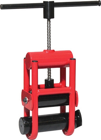 - Медленно вращайте шпиндель устройства вниз до тех пор, пока труба не будет передавлена