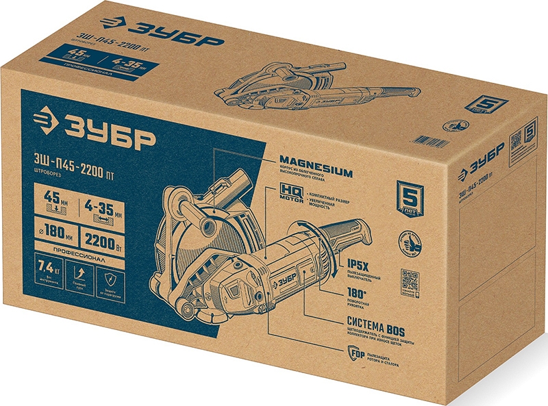 Штроборез Зубр Профессионал ЗШ-П45-2200 ПТ (Zubr Professional ZSH-P45-2200 PT) – мощная модель в серии профессиональных штроборезов ЗУБР для выполнения штроб в бетонах разных марок. Быстрый рез на глубину до 45 мм благодаря увеличенной мощности двигателя. Эффективное пылеудаление исключает простои на проветривание пыли. Облегченный вес благодаря магниевому кожуху диска.