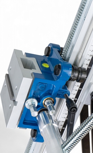 Сверлильный штатив Keos KS-250J (Кеос КС-250Джей) предназначен для фиксации сверлильных моторов мощностью до 3 кВт для бурения отверстий Ø до 250 мм под углом до 45°.